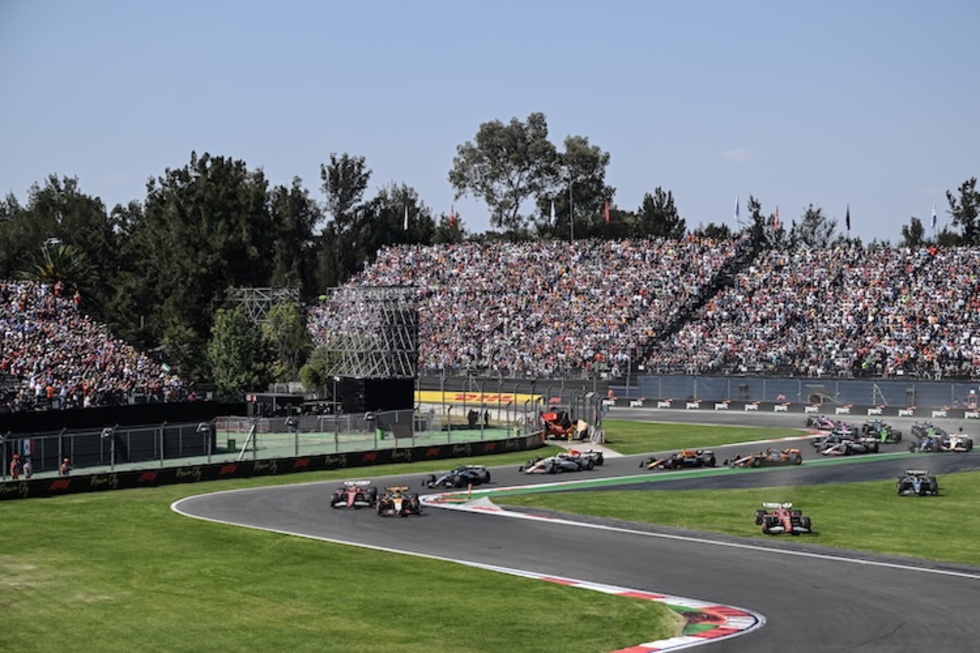 Durcheinander kurz nach dem Start zum Grossen Preis von Mexiko